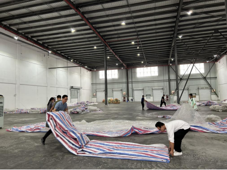 倉庫中,黨員干部職工充分發(fā)揚不怕臟、不怕累的優(yōu)良作風(fēng)和團結(jié)協(xié)作的良好精神風(fēng)貌,兩兩配合清理薄膜、疊彩條布、清掃垃圾,有效提升庫房的使用價值,同心協(xié)力營造整潔有序的生產(chǎn)環(huán)境。