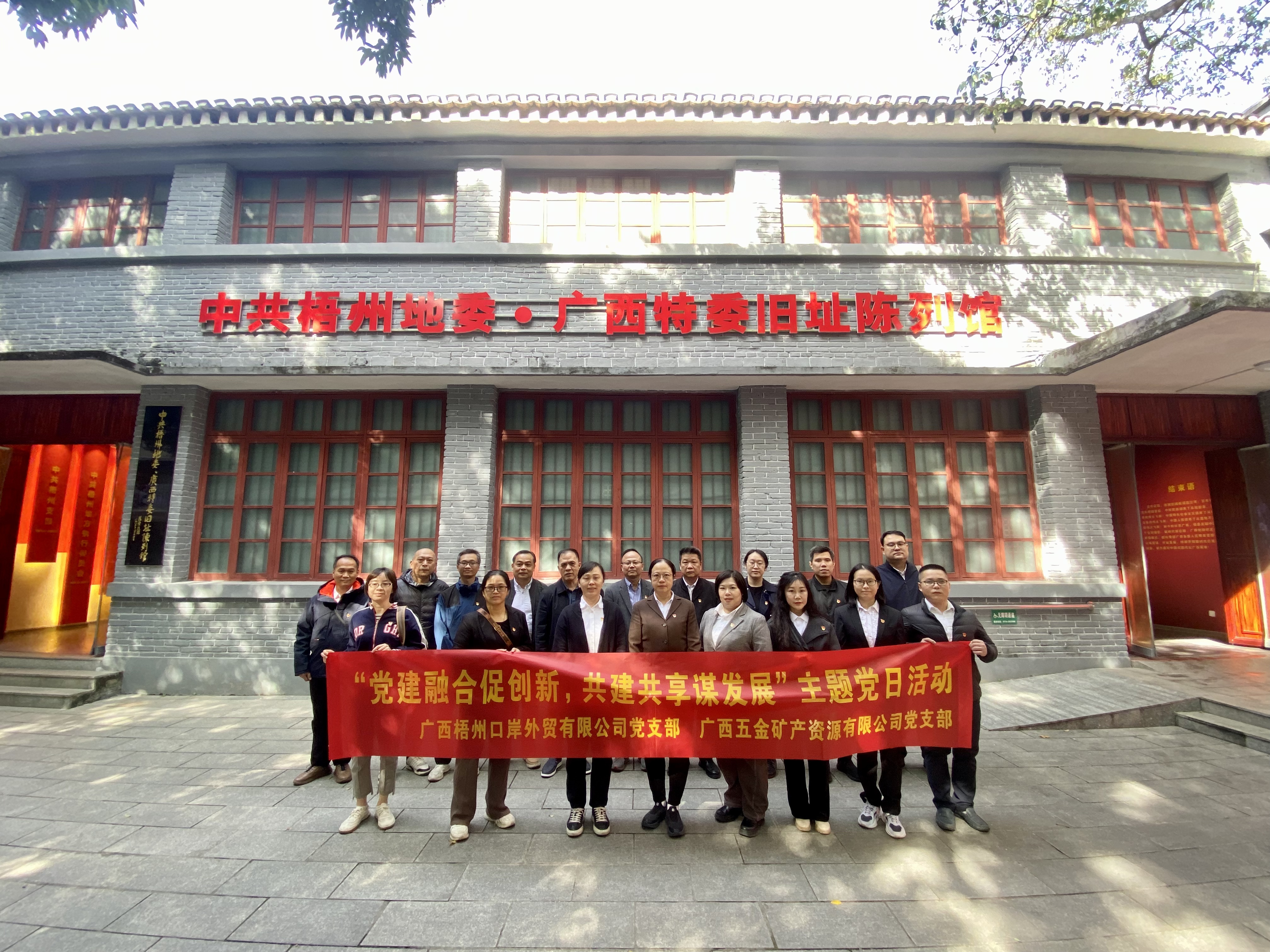 活動中,雙方黨支部先后走進梧州大同酒店舊址、中共梧州地委舊址·中共廣西特委舊址陳列館、韋拔群烈士事跡陳列館、中山紀(jì)念堂等紅色教育基地,通過實地瞻仰重溫崢嶸革命歲月,深刻感悟革命前輩們“不畏艱難、英勇奮斗、不怕犧牲、甘于奉獻”的崇高精神。同時,雙方黨支部圍繞“黨建與業(yè)務(wù)深度融合”“黨建品牌特色化建設(shè)”兩大核心主題開展專題座談,共同探討新時代黨建工作的新思路、新方法,并就如何以高質(zhì)量黨建引領(lǐng)高質(zhì)量發(fā)展分享經(jīng)驗與建議,為新時代基層黨建工作創(chuàng)新發(fā)展凝聚了新思路、明確了新方向。